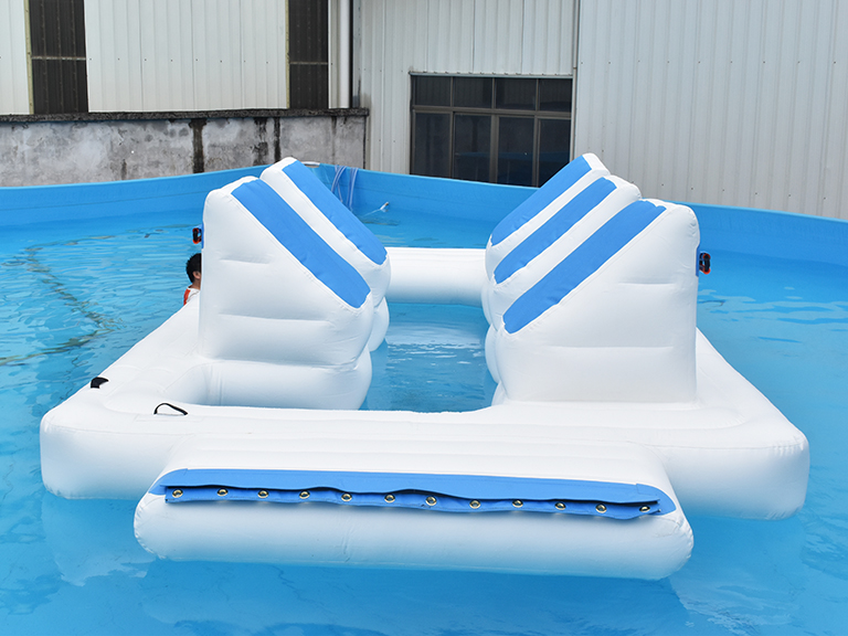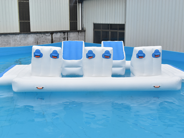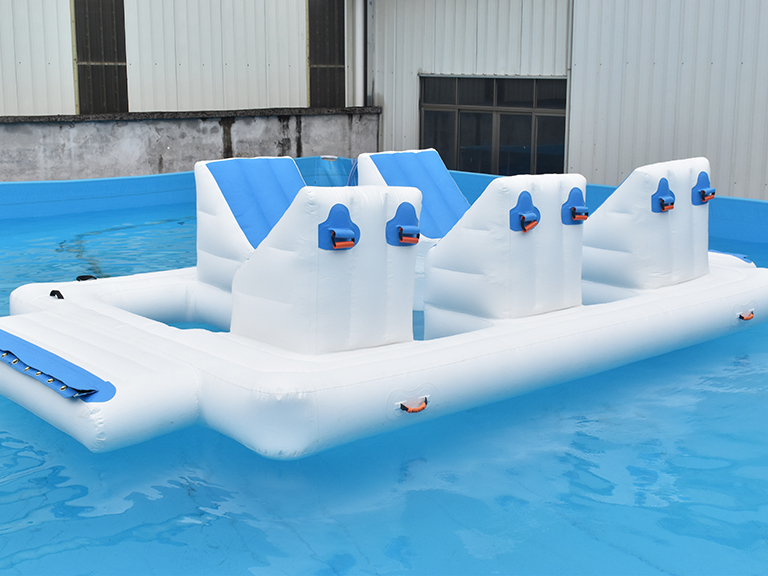 Jump from one stump to another to test your balance and make a splash if you can not get through. This Bouncia new designed quintuple steps can make your floating water park more challenging and fun. It has double layer material and easy climb steps.