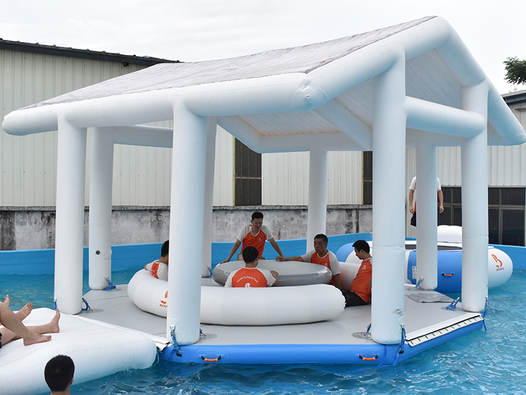 Our inflatable leisure platform islands are built to the highest commercial standards on both material and workmanship. It’s suitable for both private use and commercial use. It has a detachable modular design. And you can reduce or change some modular according to your need.