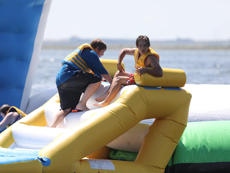 The park own 3 different water blobs: Action Tower with blob and 2 different-sized jumping pillow. With our service experience, most visitors are willing to have fun with water blob. Therefore, this inflatable water park with 3 different sizes of water blobs will satisfy you! Besides these water toys, there are lots of fun for you and your family to explore.