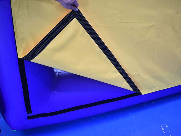 This mini inflatable ticket booth / counter is light and easy to carry. It has four carry handles and eight 316 stainless steel anchoring D rings.