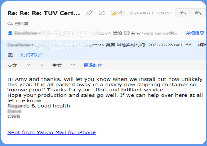 Browse https://www.bouncia.com.cn/certificate to learn TUV certificate of our inflatable water park items.