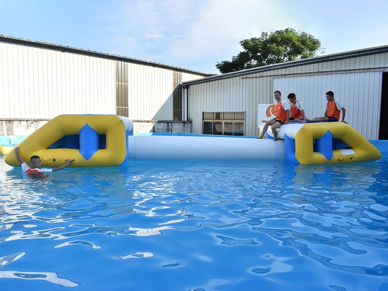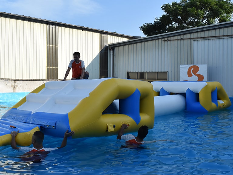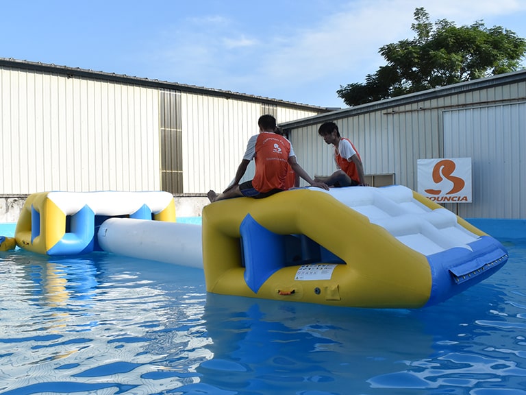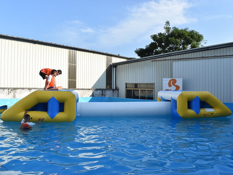 Want to know your balance skills? Bouncia rolling balance will tell you.Jumping on to the spinning log and try to get through. This item is one of the most popular item in the inflatable water park combination.