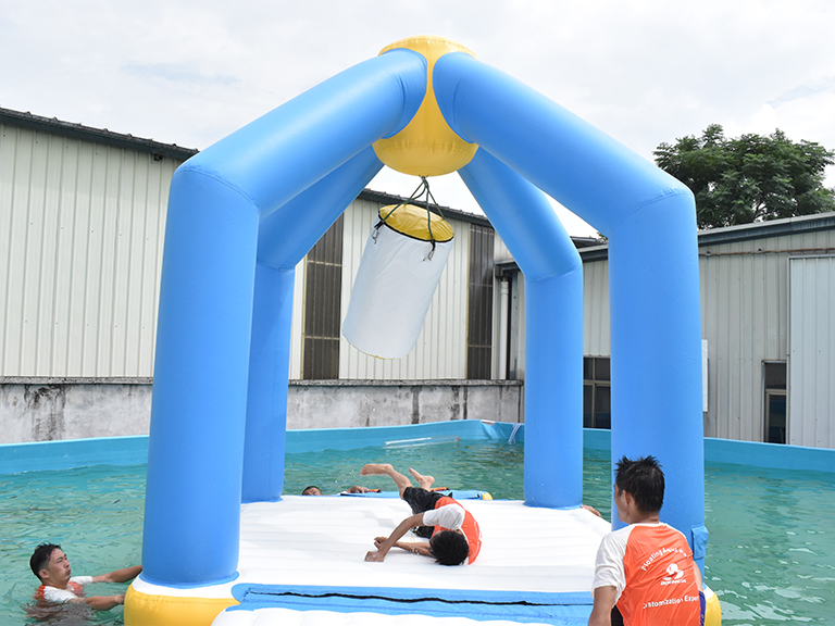 Bang-bang-bang, this item is for boxing. It’s a different experience to do boxing on water. If you do not like boxing, the middle pillar Is also a fun obstacle for you.