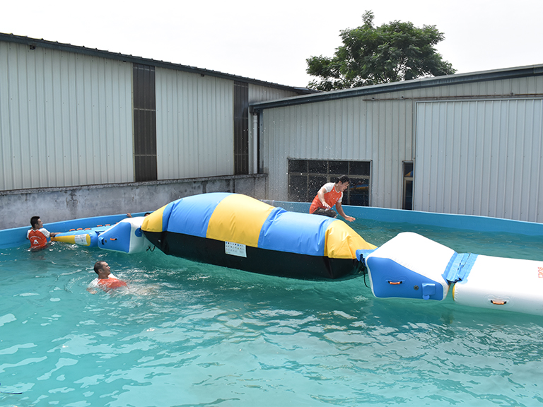 Application: Jump onto this air bag and try to move as quickly as possible. The challenge for this inflatable air bag is there is no grab handles. It is good for any locations. Lake, sea or swimming pool.